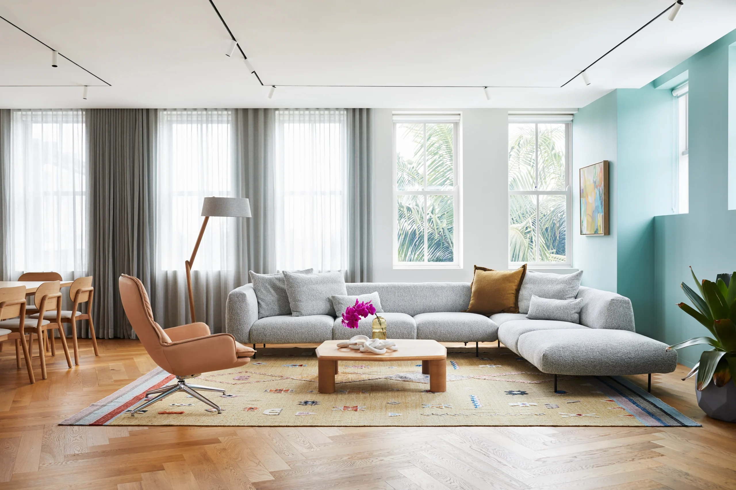 Architect Iva Foschia set out to create a space that reflects Sydney’s relationship with colour and culture. The pale, natural tones of Maison Naturale form a warm and inviting base, complementing bold accents and sculptural furnishings throughout the showroom.
