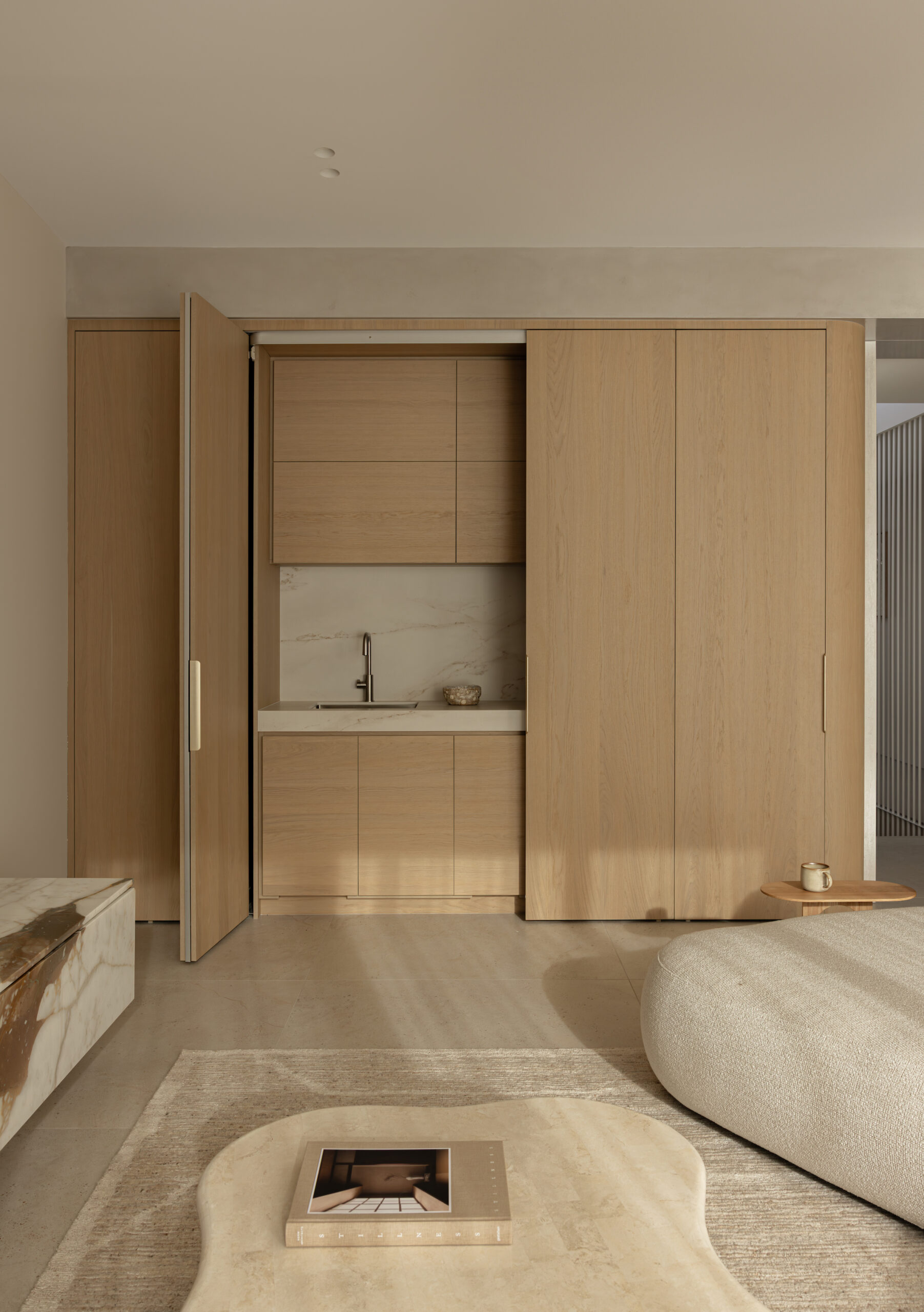 Taurean Dream by Mali White Design, styled by Laura Rees, sits on the edge of Lake Macquarie where Lignapal Vibrant Oak Grey Wash enhances the interiors with soft grain and natural depth. The prefinished timber veneer brings warmth and refinement to every detail.